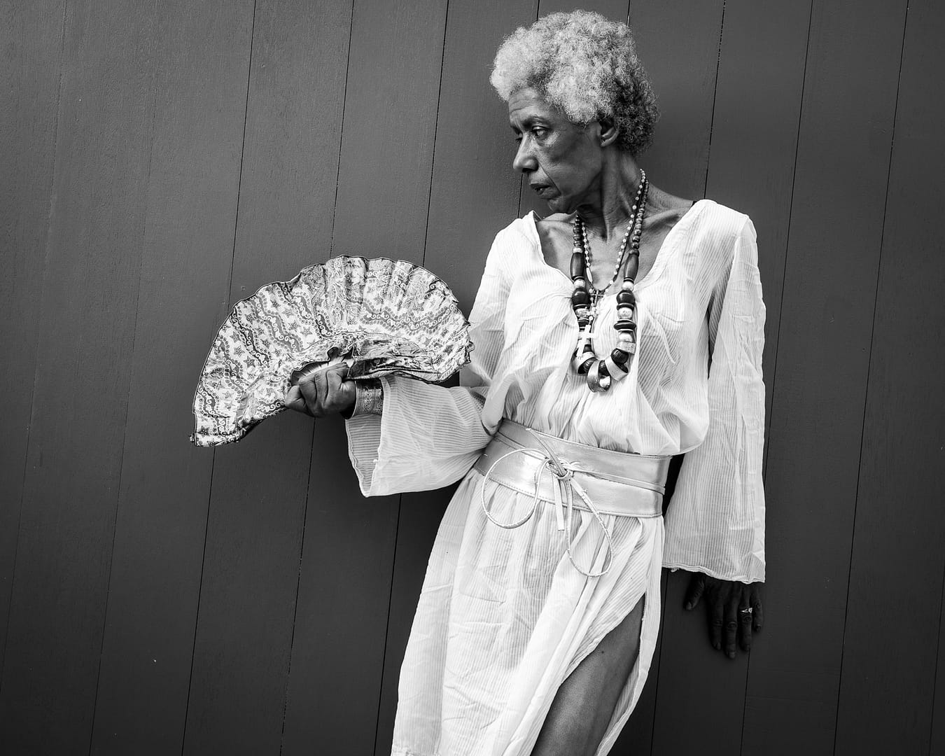 On that day I overcame my self-consciousness. Her black flapper-style dress was caught in the buckle of her shoe. She struggled. I bent down to help and politely asked, describing my studio location. She came the next day. That was the start of a 5-month collaborative journey.